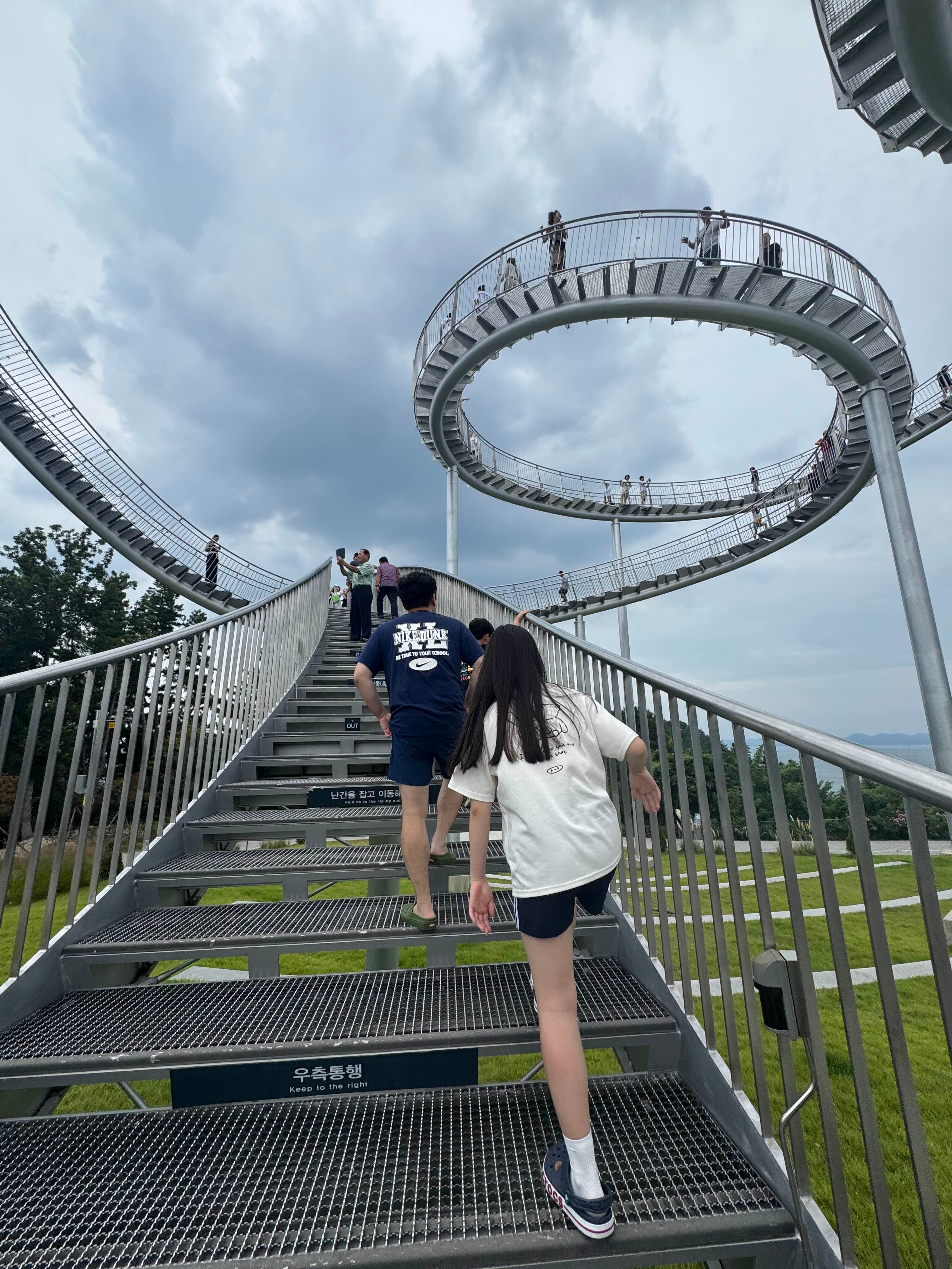 처음 도착했을 때는 멀리서부터 구조물이 눈에 확 들어오더라고요. 철 구조물이 하늘에 둥글게 이어져 있는데, 마치 롤러코스터 트랙 같기도 하고 영화 속 우주선 같기도 해서 “저걸 정말 걸을 수 있다고?”라는 생각부터 들었습니다. 가까이 다가갈수록 웅장함이 더 크게 느껴졌고, 솔직히 살짝 긴장도 됐습니다.