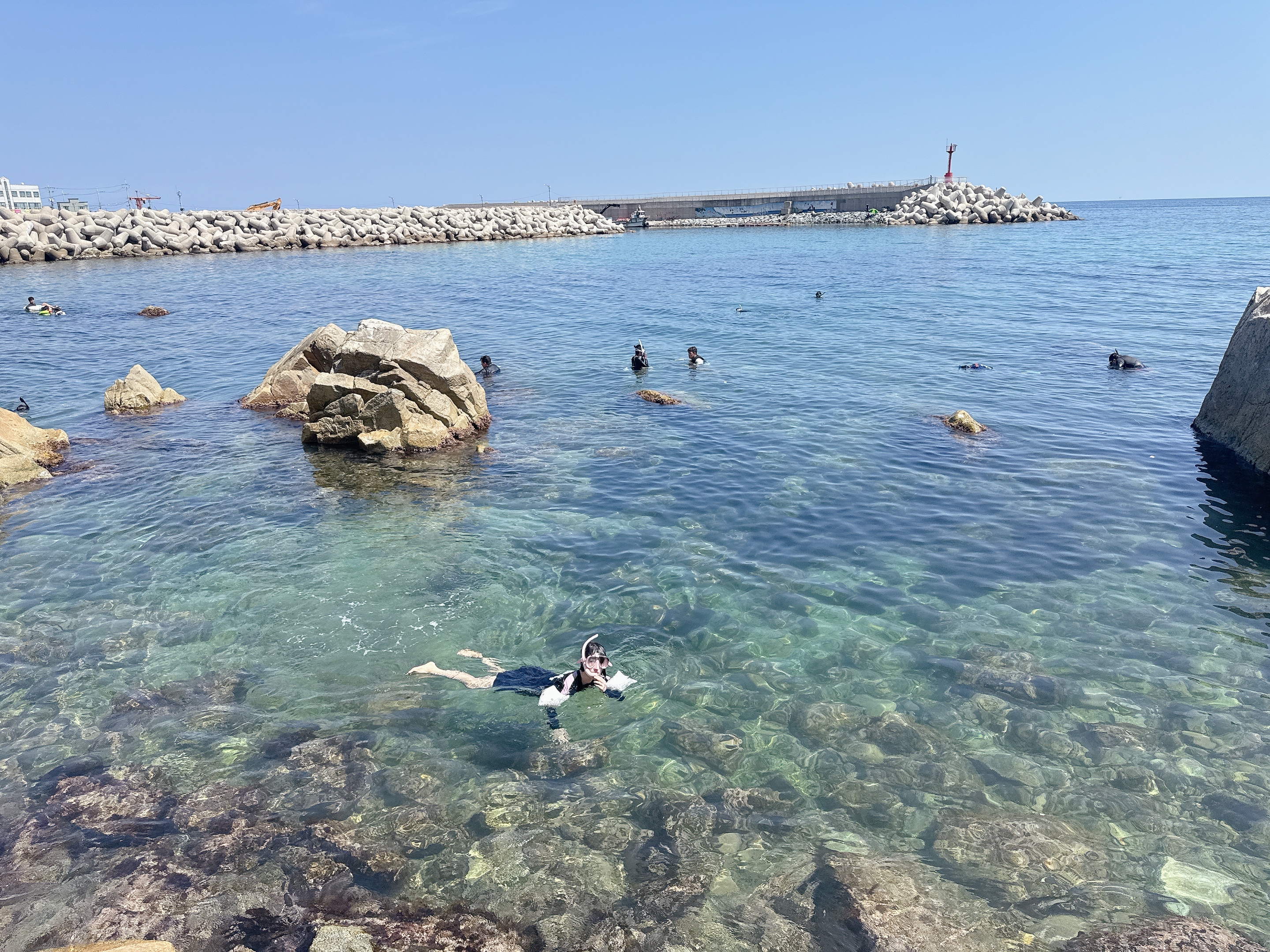 창대항은 바람 방향에 따라 물살이 조금 세질 수 있어요. 그래서 들어가기 전 꼭 물 상태 확인은 필수입니다. 저는 오전에 들어갔는데 바람이 거의 없어서 편하게 즐길 수 있었어요. 개인적으로 오전 타임 추천합니다. 사람도 적고, 햇빛이 물속까지 잘 비쳐서 시야 확보도 좋아요.