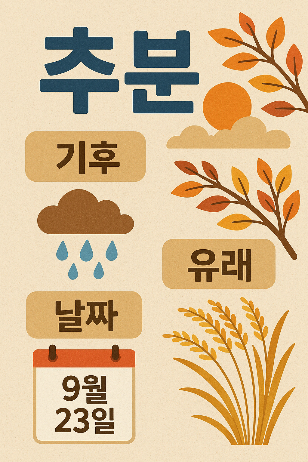 추분은 가을의 한가운데를 알리는 24절기 중 하나로, 낮과 밤의 길이가 거의 같아지는 시기입니다. 태양이 적도 위를 지나가면서 남·북반구의 낮과 밤 길이가 같아지는 현상을 기준으로 정해지며, 양력으로는 보통 9월 22일~24일 사이에 해당합니다. 추분은 ‘가을의 분점(分點)’이라는 뜻에서 유래했으며, 낮과 밤의 균형을 상징하는 시기입니다.